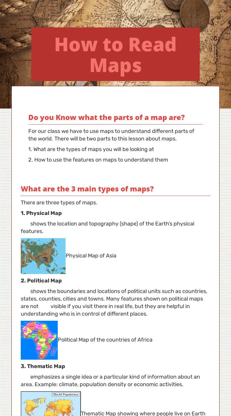 The map legend often also has a scale to help the map reader gauge dista. You can do a variety of searches that allow you to see if speci. This helps the person reading the map understand where to find certain items. Learning to read a map and navigate on land will help with directions on a road trip, hiking or orienteering. Teaching children to read is an important skill they'll use for the rest of their lives.